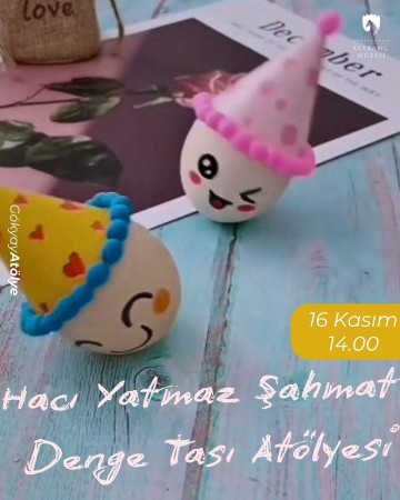 16.11.2025 Hacı Yatmaz ŞahMat: Denge Taşı AtölyesiEğlence, denge ve yaratıcılığın buluştuğu bu atölyede çocuklar, “Hacı Yatmaz” figüründen ilham alarak kendi denge taşlarını tasarlıyor.