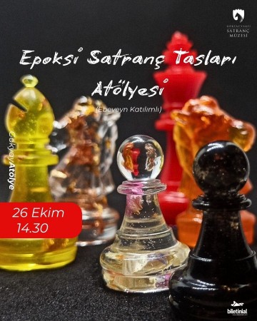 26.10.2025 Epoksi Satranç Taşları AtölyesiBu atölyede yalnızca satranç taşları üretilir, alt tabla dahil değildir. Katılımcılar epoksi reçineyle kendi taşlarını tasarlarken renk, form ve doku üzerine özgün çalışmalar yapar. Aileler birlikte üretmenin keyfini yaşar, her taş küçük bir sanat eserine dönüşür.